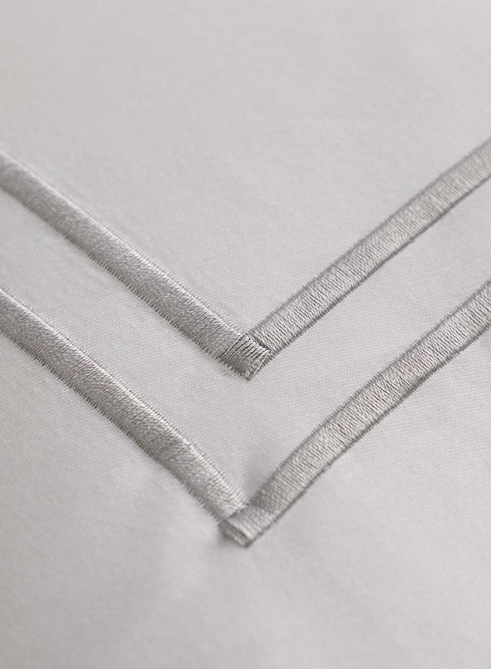 The MUIR Empire Luxury Hotel Quality collection is 500tc Egyptian cotton sateen, with a double row of perfectly embroidered satin stitch border. Empire is available in white with either Silver or Champagne stitching. Empire is the perfect bedding to create the luxury hotel bedroom and bathroom. Nothing beats a crisp hotel bed made up of white cotton linen. REAL 5 STAR Hotel bed linen.